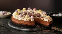 Los nidos comestibles son una idea clásica de Pascua y sorprendentemente fáciles de hacer. El coco rallado mezclado con un poco de cacao crea un aspecto tipo nido. Añade unos mini huevos de chocolate encima y la torta queda lista para Pascua al instante.